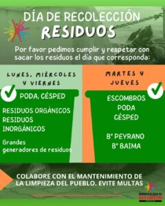 La Municipalidad de Guatimozín informa a los vecinos sobre los días y modalidades de recolección de residuos, con el...