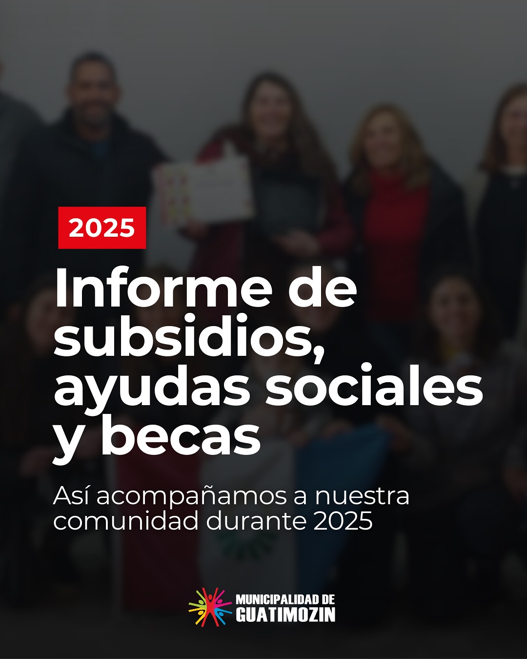 Durante 2025, la Municipalidad de Guatimozín destinó $56.923.039 a políticas de acompañamiento social, fortalecimiento de instituciones locales y apoyo a estudiantes, consolidando una política pública centrada en el bienestar y el desarrollo de la comunidad.